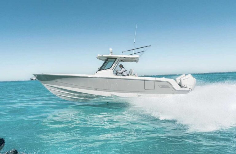 This trailerable 20-footer is based on the builder’s patented Z-Plane hull.