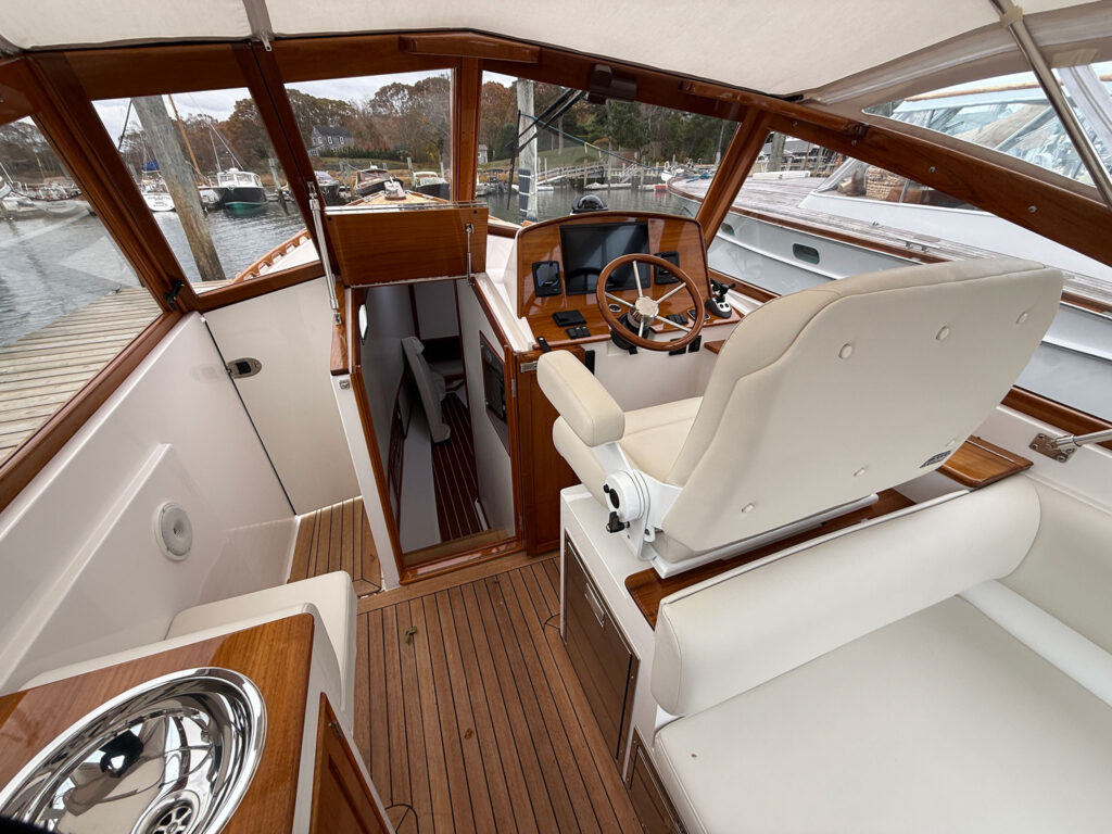 Connor says he sacrificed cabin space for the open bow because, generally speaking, boaters used that cabin space to stow bags or other things. Nowadays, he says, “No one’s using the cabin for its intended purpose.”