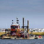 A dredger at work in the New Jersey Intracoastal Waterway, a continuous task with the constantly moving shoals.
