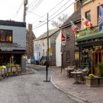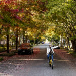 Tenley enjoying her freedom that the bikes give us while exploring a tree lined street in Oxford, MD in the fall.