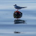 A common tern perfectly balanced on a crab pot float watching us on the Goose cruise by.