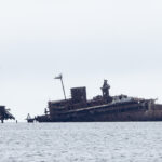 A ship used for bombing practice in the Chesapeake bay near Tangier Island, VA.