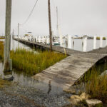 The Parks Marina dock at high tide showing signs of the rising water level in Tangier, a serious threat to the people of the low lying island.