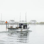 A hazy day in Tangier, VA as a local waterman comes in after a morning of crabbing.