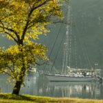 Nautical photographer Onne van der Wal and his wife, Tenley, spent the past two years refitting Snow Goose, their 1986 Grand Banks 32, with the goal of taking her south for the winter. On October 16th, the van der Wals began the 3rd leg of their journey through the Chesapeake Bay. The Chesapeake Bay is the largest estuary in the U.S. and offered them beautiful sights. The van der Wal’s witnessed the changing leaves, fishing communities, shipyards, seabirds and much more.