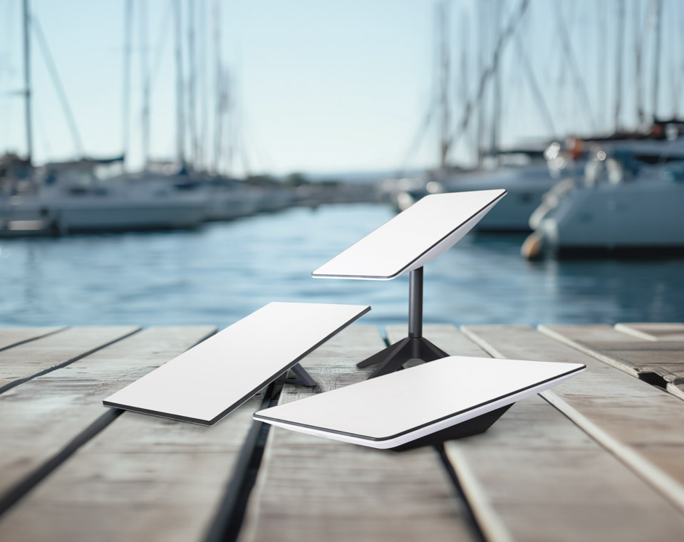 The Mini, the newest and most portable option, is slightly larger than a sheet of printer paper. While its baud rate is lower, it delivers speeds of 100-150/10 Mbps (down/up). With a built-in router and DC input (12V-48V), it’s the easiest to install. Ideal for coastal boaters with minimal bandwidth needs or those wanting a flexible, off-boat option. It has the lowest power draw of 20W-40W in use (15W idle), AC/DC power input, and with a cost of $599, it is the most adaptable choice.