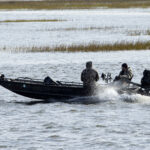 Local duck hunters moving along the ICW with haste and noise