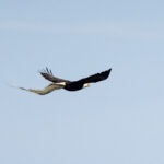 Bald Eagle carrying back grass to build a nest