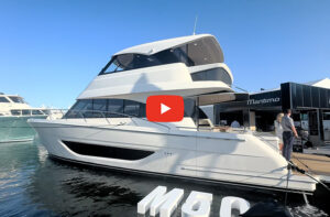 Despite the nomenclature, the 41 has a length overall of 44 feet, 1 inch. Beam is 13 feet, 9 inches. Even though she is shorter than the 44, the 41 feels big. The windows are huge and make the boat look even larger. Visibility is excellent, and the European-style cabinetry makes the interior feel bright and airy.