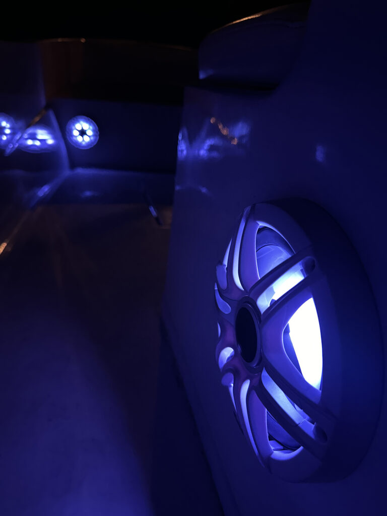 They wanted faster cruising speeds, but the extra power made the boat squirrely. John talked with other Chris-Craft Commander owners online and learned that the hull had a built-in trim-tab feature, essentially a lip at the transom edge of the hull, which pushed the bow down and caused the nose to turn. Theyworked with SkipperBuds’ Quarterdeck Marina technicians in Sturgeon Bay to have the hull feature ground down. “The handling improved immediately,” John said.