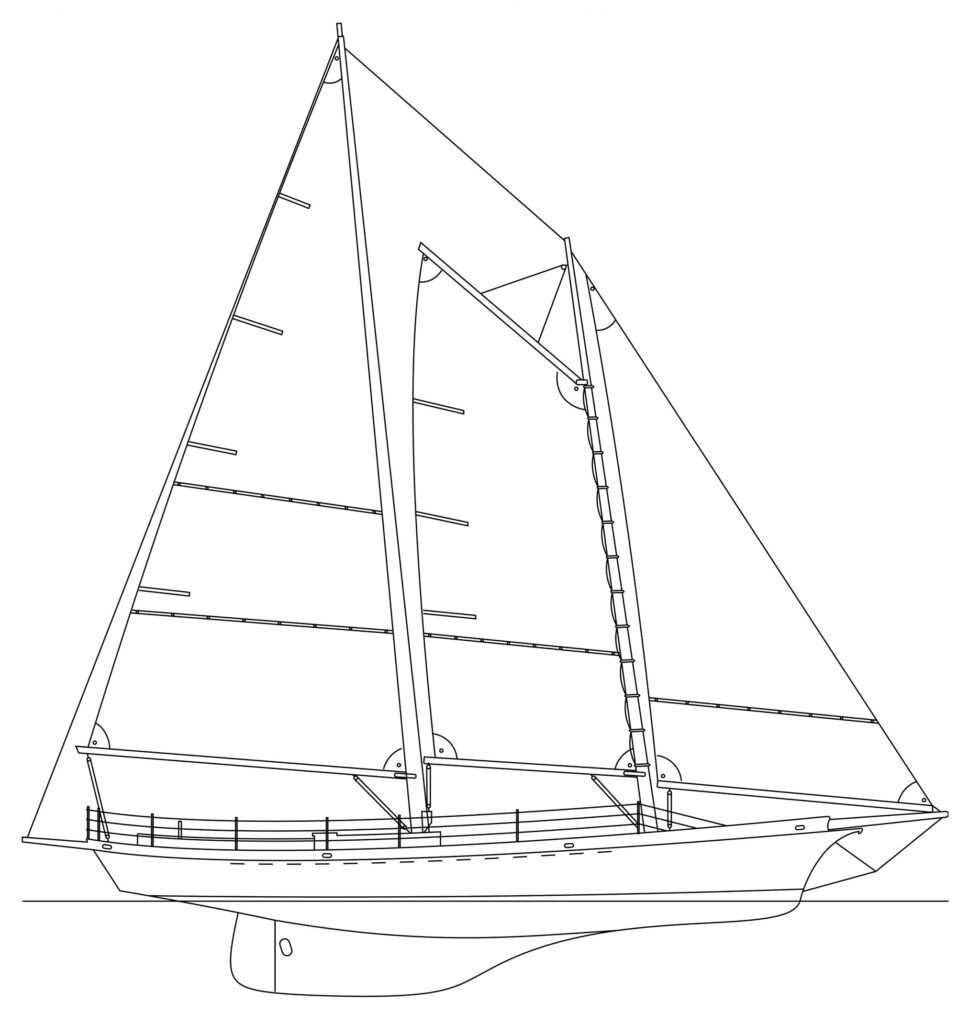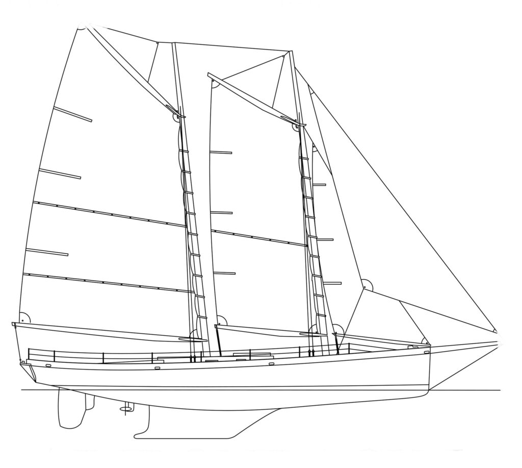 Because the Coast Guard penalizes sail area up high, John also simplified the rig. “We did away with the topsails and the flying jib because it wasn’t a practical sail for day sails,” John says. “When you’re designing a sailboat for a U.S. Coast Guard certificate, you’re limited in sail area, and you want to put that sail area where it’s going to be used.”