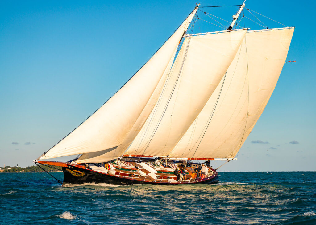 Chartering turned out to be profitable. In 2007, the Scaranos bought Imagine, an 80-foot schooner they had built for a client in 1997, renamed her Adirondack III and added her to their fleet. The next year, they sailed Adirondack II down to Key West, where she joined the local schooner fleet for the winter.