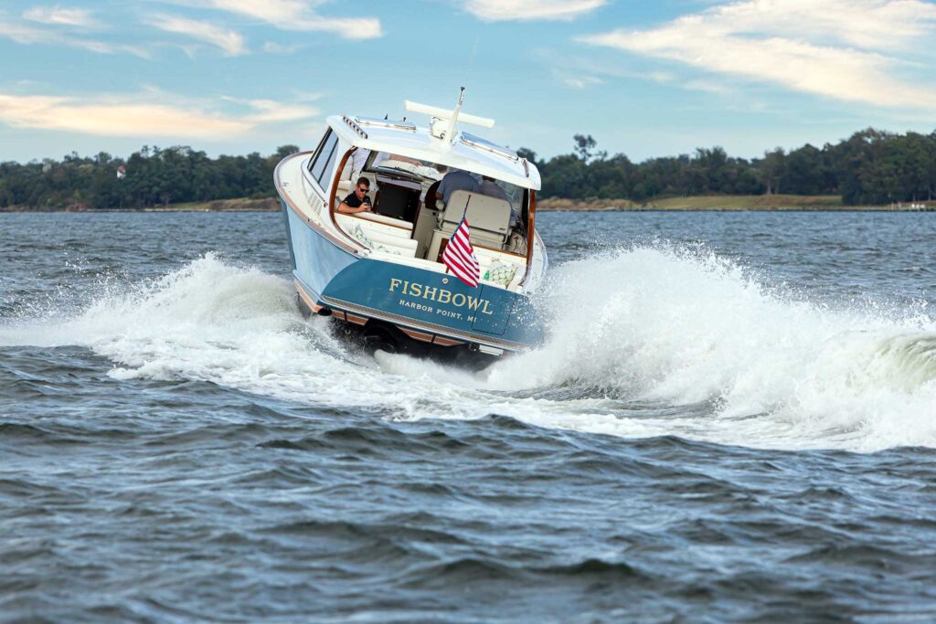 “We asked ourselves what made the original Picnic Boat so special. Everyone who has been around one knows that feeling. The lines just capture your heart,” says Scott Bryant, vice president of sales and marketing at Hinckley. “We used that as our guide to create something modern.”