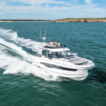 Jeanneau debuted the NC1295 FLY at the 2022 Fort Lauderdale Boat Show. The 41-footer has three staterooms and is powered by triple 300-hp outboards.