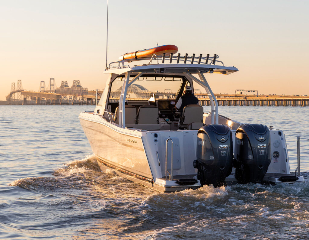 They took delivery in July 2023 of Sunshine & Whiskey, which they cruise along the New Jersey coast from Point Pleasant to Atlantic City. The price ended up being about $377,000, Paul says, after adding a few things. He’s especially happy with what he calls the “bonus” of a Yamaha package that includes autopilot and a pattern-steering feature. “You can do a zigzag and other things automatically when you push the button,” he says. “We use the autopilot a lot when we’re offshore. Let’s say we’re going from reef to reef. I push the button and the autopilot takes me there.”
