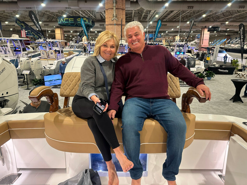 The Cardiles (pictured above) have been boating since the early 1990s, so when they went shopping for a new boat last fall, it was their fourth time they approached the process. Frank had a well-thought-out plan when they walked through the gates at the Fort Lauderdale International Boat Show. “We would look at three boat brands: Everglades, Grady-White and Valhalla.”