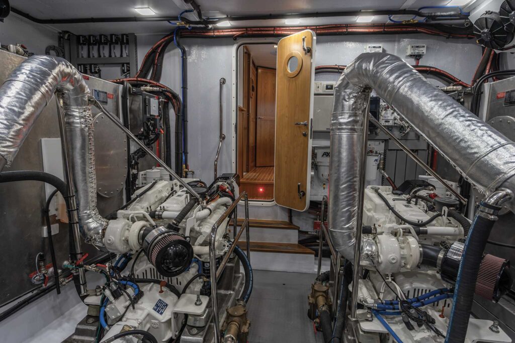 Redundancy is important to the couple. That’s illustrated at the helm, where many things come in twos, from the Stidd helm seats to a pair of autopilots and VHFs. The boat also has two NMEA networks. For the electronics suite, they worked with Voyager Maritime Alliance Group in Fort Lauderdale.