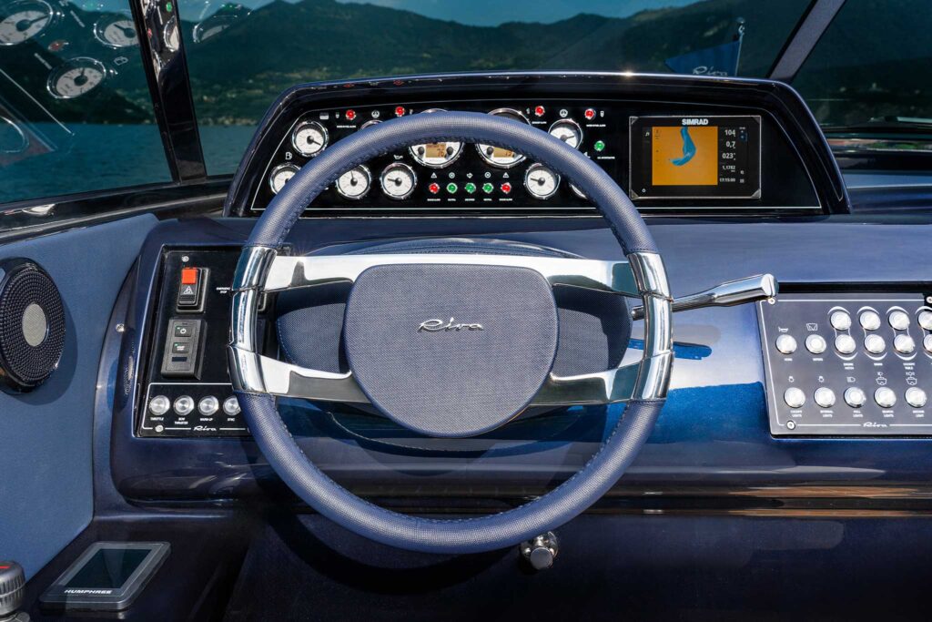 Today, the Aquarama’s influence is most evident in the Aquariva line of modern runabouts with fiberglass hulls that blend the builder’s heritage with plenty of high-tech features and systems. Originally introduced as a tribute to the Aquarama, the Aquariva translated the sexy lines and spirit of Carlo Riva’s wooden icon into a contemporary form. Over time, the boat established its own legacy and became an aspirational craft for a new generation of boaters.