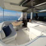 Getting aboard the 58 will be simple thanks to large boarding doors that open out to a water sports or entertaining platform at anchor. Owners may opt to include a high/low hydraulic platform to make boarding even easier.