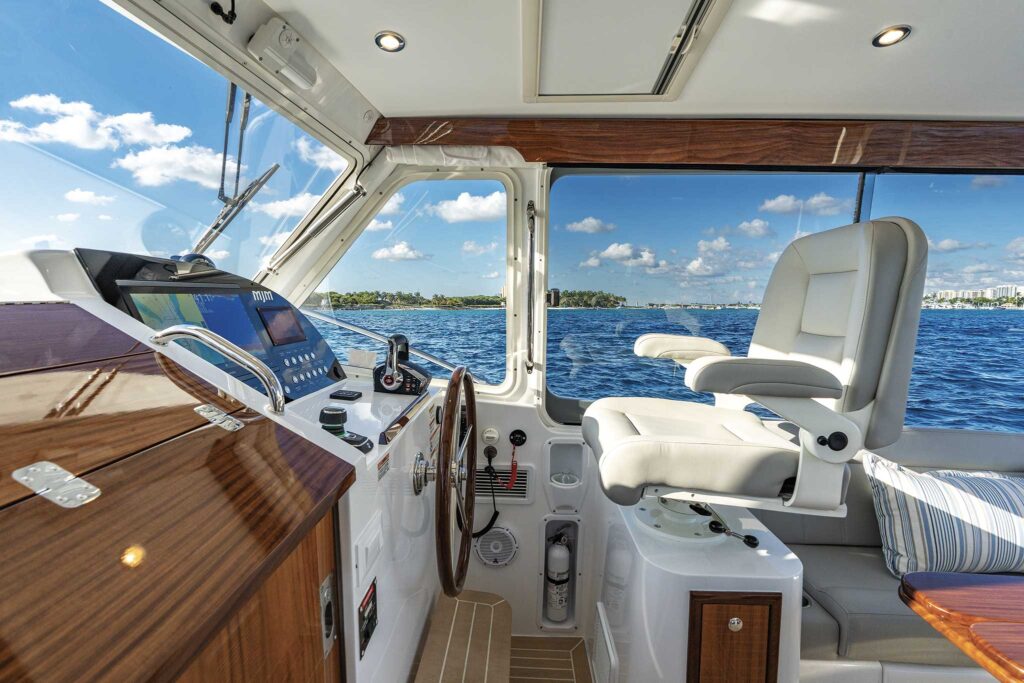 More important, the seaworthy hull and enclosed pilothouse on the 38RS kept us all high and dry for the entire day, while the rest of the fleet wore doused foulies and returned to the dock looking more than a bit raw in the blustery weather. I’ll take high, dry and fishless any day.