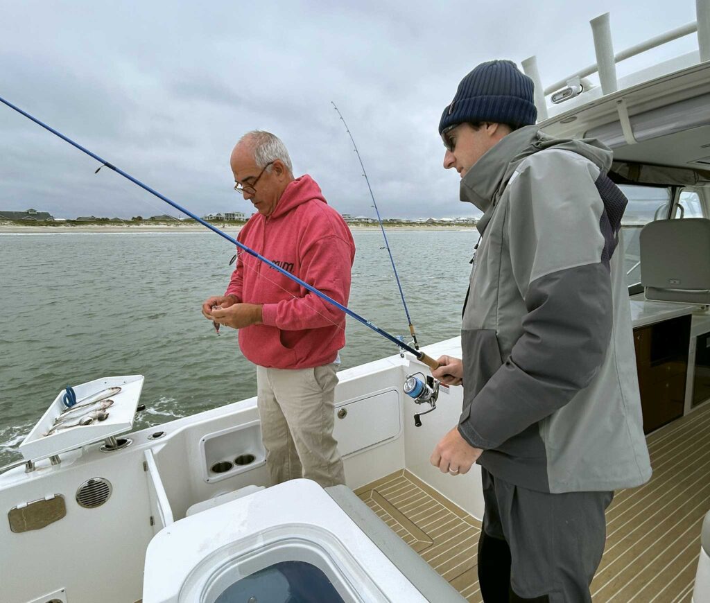 In the heated wheelhouse, MJM’s Madelyn Knobel watched the action from the L-shaped settee. Donahue and I split the cockpit, slinging bait in the shallows near the inlet and down the beach. We also did some vertical jigging on a nearshore wreck where I’m nearly certain I dropped a good grouper just before it broke the surface. That loss was not the boat’s fault.