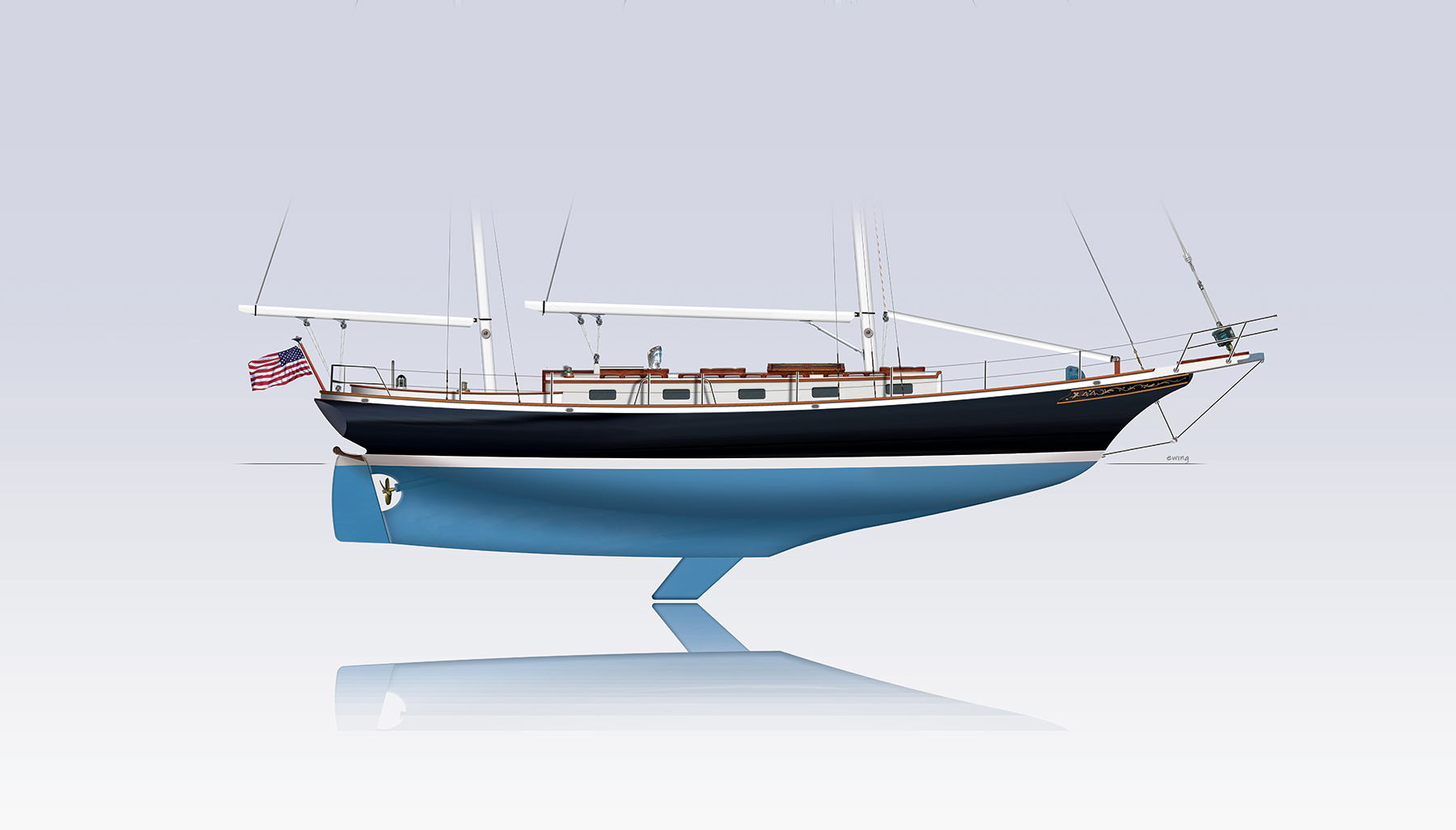 From its modest bowsprit and curvaceous clipper bow, the Cherubini 44 has timeless lines and enduring appeal.