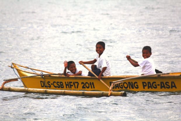 In the Philippines, a charitable organization provides yellow school boats to children, so they don’t have to swim to school.