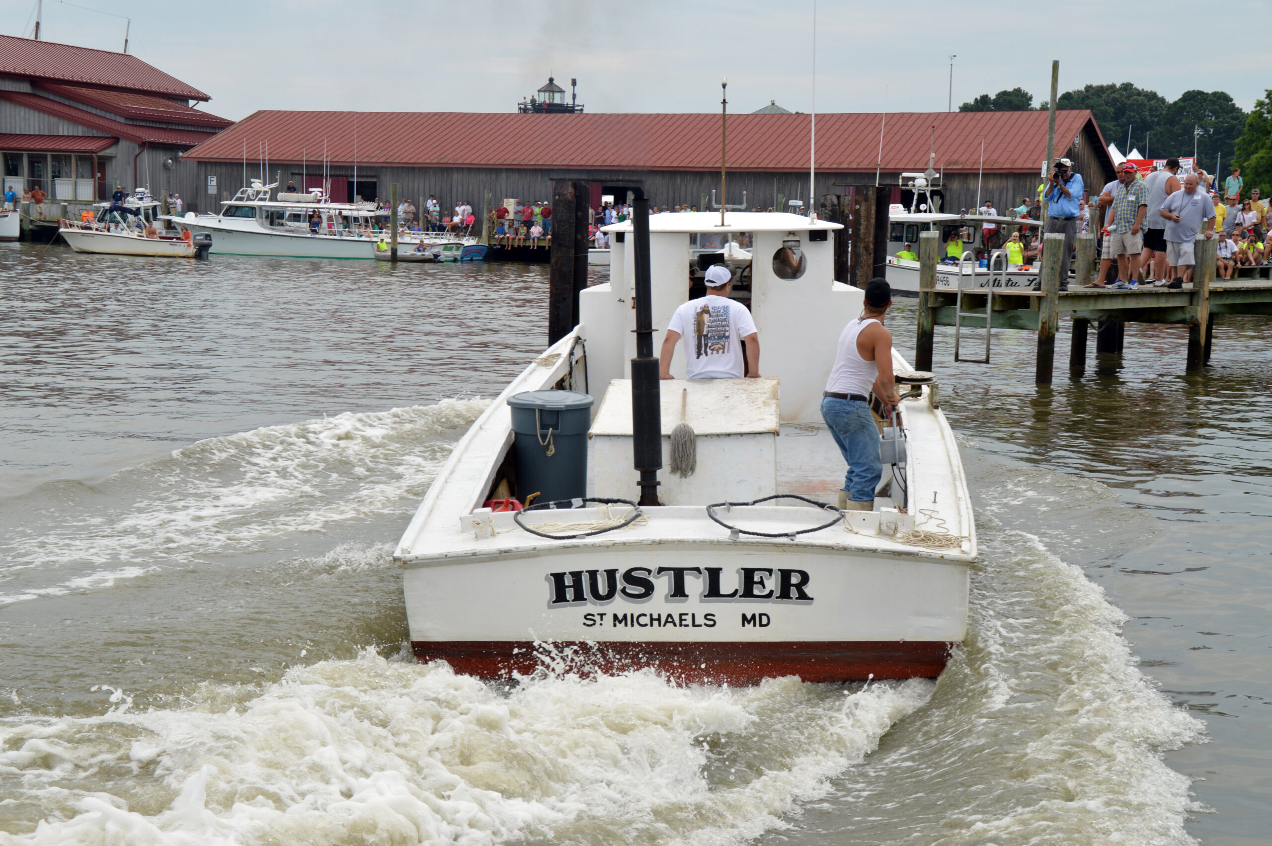 The rules to the competition are simple – be the fastest to dock a boat stern-in by lassoing four pilings with large hoops. The winner