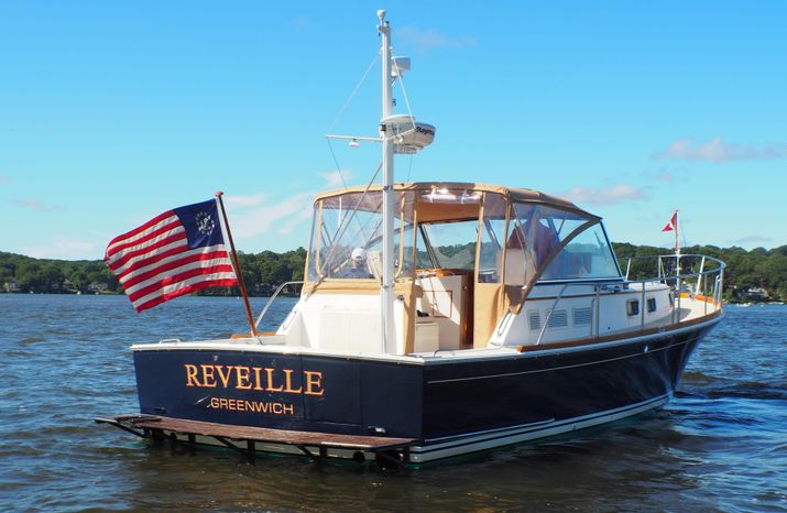 The Eastbay 38 offers accommodations for up to four in a single stateroom layout with Vee berth forward cabin and convertible settee. Offered at $195,000.
