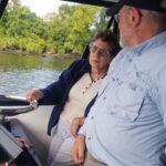 At the end of the 2022 boating season, Rik, Anne and some friends took Aberration out on the Erie Canal for one last spin. After going through one of the locks, Rik handed the helm off to Anne’s aide, Marina, pulled up a chair next to Anne, and held hands with her while they watched the scenery go by.