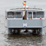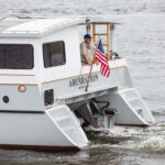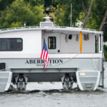 On April 26, 2021, they sea-trialed the new cat on the Hudson River. With seven people aboard, the newly named Aberration did about 8.5 knots, and despite winds in the 15- to 20-knot range, she behaved herself.
