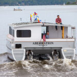 Aberration was launched in early 2021 after being completely converted from a 35-foot sailing cat into a handicapped-accessible electric-powered catamaran.