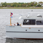 The sea trial included a lot of electrical-system glitches, and even though the boat wasn’t fully finished (a national foam shortage delayed the cushions and mattresses), Rik and Anne took delivery in May 2021. For the rest of the summer, with family and friends, they explored the waters near their house. A fall trip to Lake Champlain was thwarted when one of the Torqeedo props was damaged and supply-chain problems prevented a replacement from arriving in time.