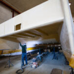 The Luaua 35 while being transformed into Aberration at Scarano Boatworks in Albany, New York.