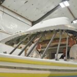 Alex TaylorOverall, the restoration will include high-density rigid foam board skinned with E-glass. The sandwich is stiff, light and easily machinable. Production manager Andrew McNab says the original hull has held up well. “The fiberglass cloth was very heavy, and they used tons of it in the laminates,” he says. “Today, with computerized design and engineering capability, laminates can be engineered to the nth degree. In the 1960s, if you had doubts, you just added more cloth.”