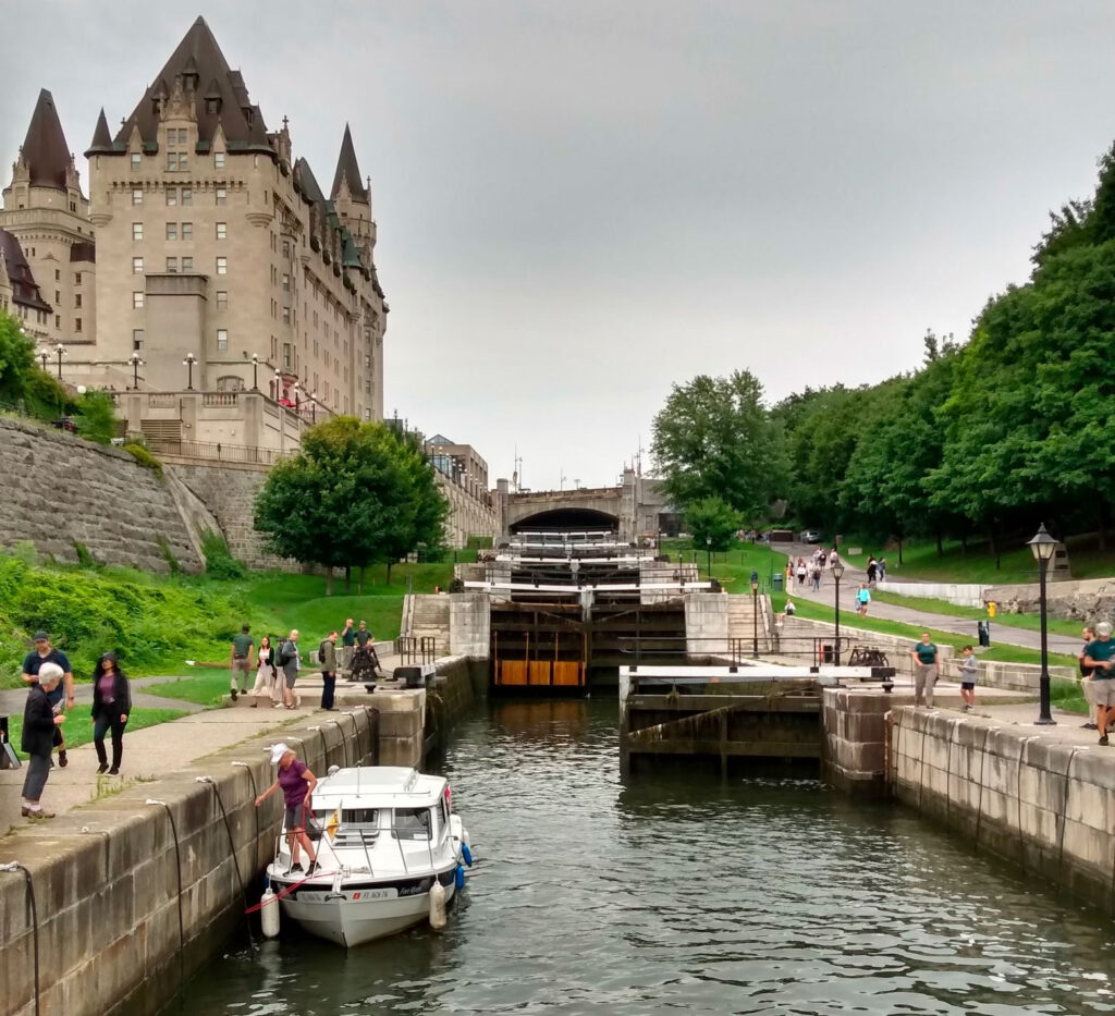For instance, there was that day at the lock. Now, I have done 179 locks. And in almost all of them, you tie up or grab lines on the starboard side. Well, we got to a lock on the Rideau Canal going due north to Ottawa, and there was no space on the starboard side to wait, just a pile of rocks. Portside was a small floating dock. So, I swung the boat around because my fenders were to starboard. But now I was facing away from the lock. The dockmaster said: “You need to be pointed toward the lock, so rearrange your fenders.” The boat was in neutral, tied to the dock. Linda and I were on the dock rearranging the fenders when Wookie jumped on the throttle—putting the boat in full-speed forward.