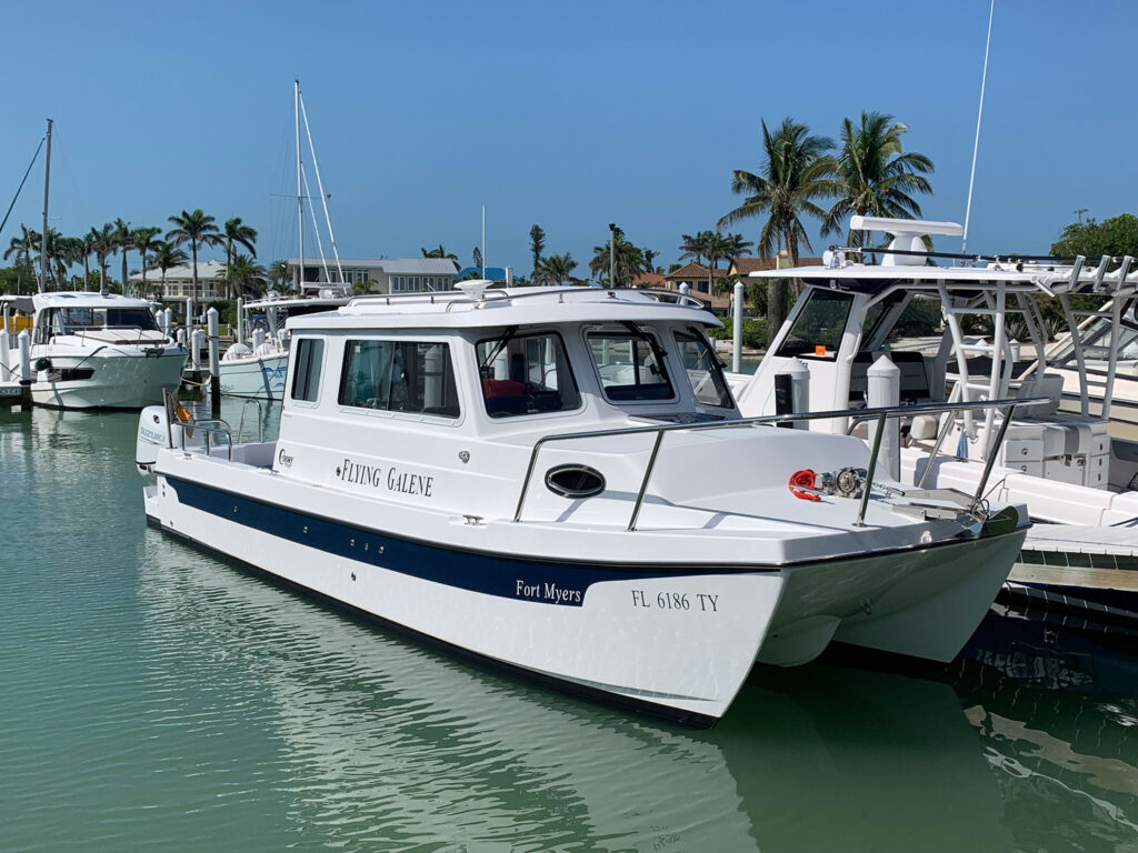 Most recently, I bought a 25-foot C-Dory again, but this one is a catamaran called a TomCat. It has two engines, so I can steer with the wheel or by putting one engine forward and the other in reverse. And there’s a joystick for easier docking. Wookie the dog should be able to steer using her nose on that joystick.
