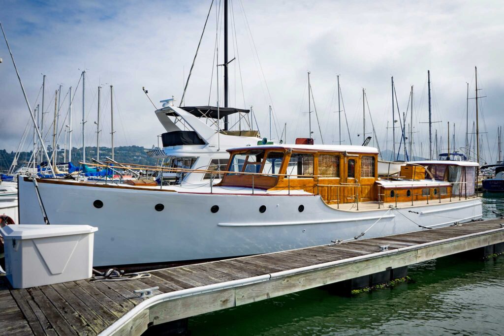 Soon, Lauren de Remer will make her way down the docks to board Tautira, a sleek, white wooden cruiser built in 1930. In another life, this 52-footer’s owner was the film director King Vidor. The boat served as a floating playground for a who’s who of the Los Angeles film scene. During World War II, the U.S. Navy seized her, outfitting the boat as a surplus vessel along the Pacific Coast. In the decades that followed, she passed through a carousel of owners, restorations and far-flung voyages.