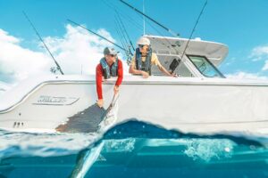 “Of course, we draw inspiration from those tough lobster boats that you see everywhere in Maine, but we spend a lot of time designing out the parts that can be frustrating from a recreational point of view, all the while designing in luxury, comfort and performance,” says Kevin Burns, vice president of design and product development. “Our boats all still ride on hulls inspired by those working boats, which is what our customer love about them, but you’ll see our techniques are very different from the way most lobster boat hulls are built.”