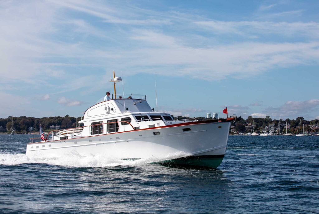 Owners of other boat brands will refit their vessels to gain speed through performance-enhancing modifications like repowering with a new engine, improving the power-to-weight ratio, or changing the prop, among other methods. “I can’t say that we’ve ever had someone who came to us and said they want to go faster,” Tyska says. “Usually, it’s part of a more holistic conversation about speed, efficiency and seaworthiness. Usually, when you get more speed, you give up some efficiency or you’re pounding into the waves more. It’s a give and take.”