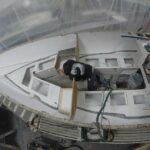 Removing the bulkhead and adding the windows made the cabin more enjoyable, with better light and more room, even though it’s smaller overall, Zani says. The V-berth is a little bigger, and making it easier for sailors to move fore and aft. The smaller cabin still sleeps four, but there’s no room for the galley, which was already gone when Zani bought the boat. And he has no need of it. When he cruises with his family, they eat out of a cooler.