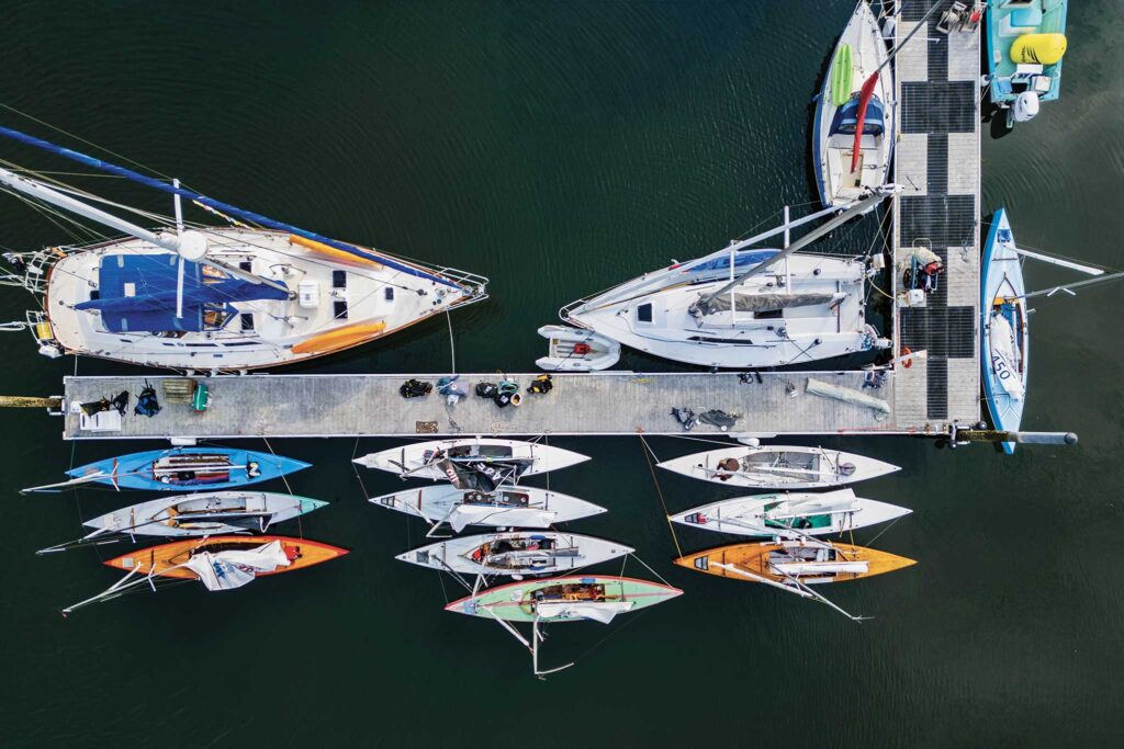 Back in Port Madison, in light and fickle winds that strengthened late in the day, Bundy and Lanzinger took second place on a boat they borrowed from Mackey. In the past, they’d campaigned high-performance dinghies like International 14s or 505s, which are on the cutting edge of technical development and unlike the 110 fleets, where well-maintained boats from the 1940s and 1950s can still be competitive. “The [110] class is stacked with sailing talent,” Bundy said, “and people are more relaxed while still having game.”Â