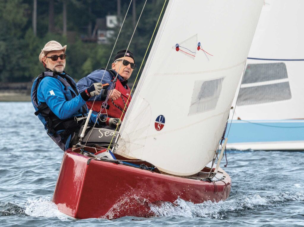 Aside from the nimble golden-agers, competitors in this inaugural regatta also included decorated locals like Kris Bundy and Fritz Lanzinger, professional rigger Erik Bentzen, sailmaker Eric Taylor, and Michael and Molly Karas, who usually race fast dinghies. (They won this year’s WA360 distance race in Puget Sound on their G32 catamaran.) “It’s about the communities we hang out with,” said Molly, who is 38. “We often race on boats that are owned by friends or by the best sailors in town.”Â