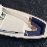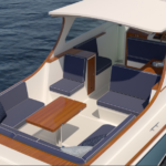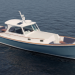 Like the original Shelter Island Runabout, this new model features custom-made details, including hand-polished type 316 stainless steel chocks, folding cockpit steps, and a varnished teak anchor platform with windlass. There is an option for a varnished teak cabin trunk which, the company says, offers the “traditional touch of artisanal craftsmanship.”