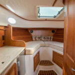 So why is this not a Sport Boat? “The Sport Boat is for sport utility,” Bryant says. “It’s about wash-and-wear, load it up and go. The Hinckley 35 will be for cocktail cruising and picnic boating. It has the Hinckley curves with outboard propulsion.”