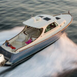“It’s similar to a Picnic Boat but it’s optimized for outboards,” says Scott Bryant, Hinckley’s vice president of sales and marketing. “The Picnic moniker is reserved for Hinckley’s jetboats.”