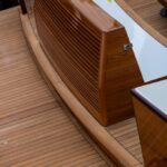 Featuring a distinctive all-varnished trunk, cabin and flybridge, a custom titanium spiral stairwell and twin Volvo Penta IPS 1350 pod drives, the Spirit of Tradition design is a stunner and should run like the wind.