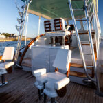 Buffett made countless trips throughout the Florida Keys, Bahamas, and up to the Hudson Canyon fishing with friends, putting nearly 5,000 hours on the twin 670-hp Cummins QSM11 diesel inboards. The engines have since been re-manufactured and the top end speed is now 35 knots, with a cruise speed of 24 knots. The boat was eventually sold to a friend of Buffett’s, which is when she was renamed.