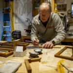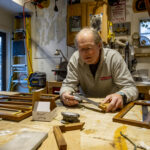 In his workshop, Onne measures the diameter of the lights