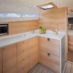Last year, Palm Beach introduced their new GT series, starting with the GT50 Express and in February the GT50 Open made its debut at the Miami International Boat Show. These photos show the GT50 Open inside and outside. She is said to be capable of 40 knots and cruise in the mid-30 knot range. A GT60 is scheduled to debut in September of this year and a GT70 is also in development.